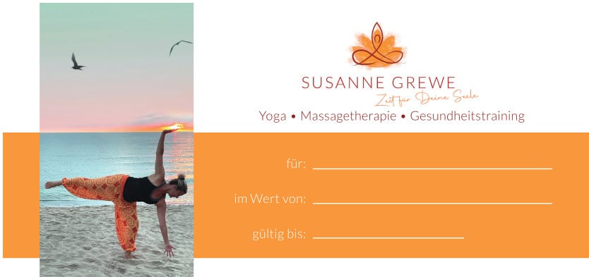 Mit einem Wohlfühl- oder Entspannungs-Gutschein über den gewünschten Betrag kann sich der Beschenkte selbst aussuchen, ob er beim Yoga oder einer Massage entspannen möchte.